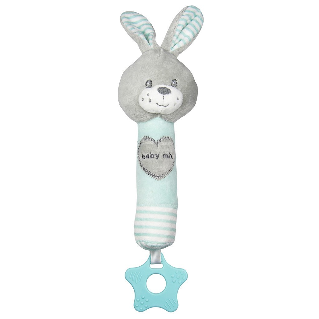 Dětská pískací plyšová hračka s kousátkem Baby Mix králík mátový