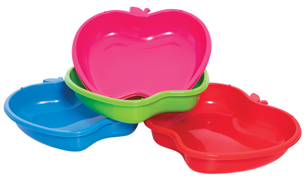 Pískoviště zelené ve tvaru jablka, vyrobeno z kvalitního plastu v Maďarsku. Výrobek může sloužit i jako bazének. Velikost pískoviště 85×76×17 cm. číst celé
