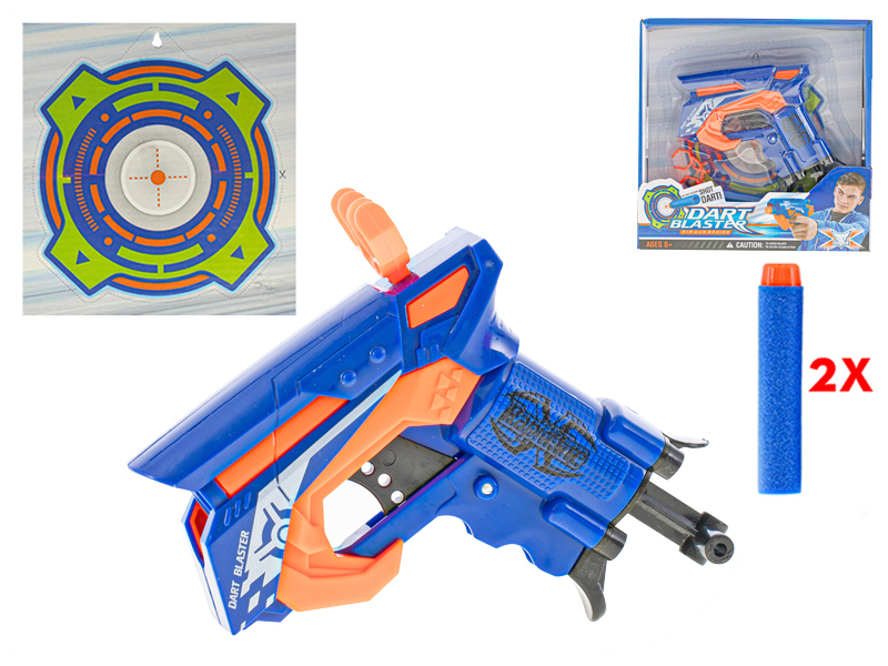 Pistole 11cm na natažení s pěnovými náboji 2ks a terčem v krabičce