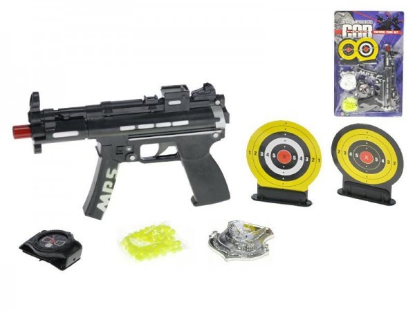 Pistole Samopal plast 20cm na kuličky +kuličky+terče+doplňky na kartě