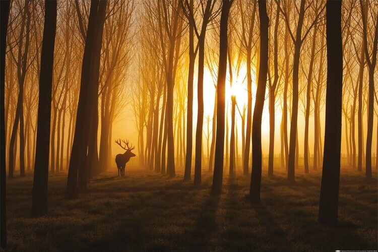 Plakát, Obraz - Stefan Miron - Hirsch im Wald, 91.5 × 61 cm