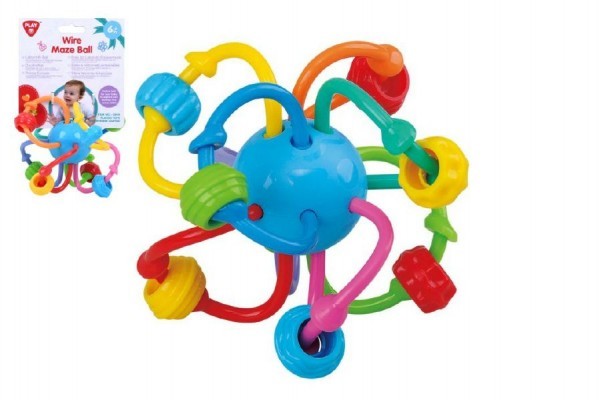 Chrastítko míček zamotaný plast 12cm na kartě 6m+