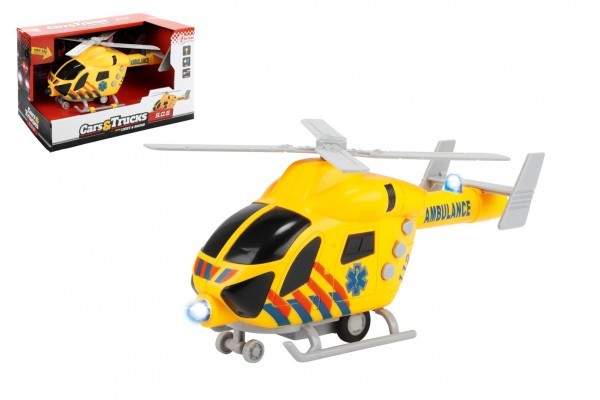 Vrtulník záchranáři 20cm plast na setrvačník na baterie se světlem se zvukem v krabici 23x13x10cm