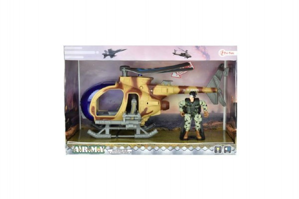 Vrtulník vojenský + voják sada plast na baterie se zvukem se světlem v krabici 30x20x12cm