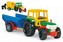 Traktor je vybaven odklápěcí kabinou, díky které si děti mohou představovat, jak se řídí opravdový stroj. Součástí je také vlečka, kterou lze snadno odpojit. Vlečka má navíc otevřenou zadní část, což umožňuje jednoduché vyklápění nákladu - perfektní pro různé herní scénáře a kreativní hraní. Produkt je vhodný pro děti od 3 let a podporuje jejich rozvoj hrubé motoriky, představivosti a zručnosti.
