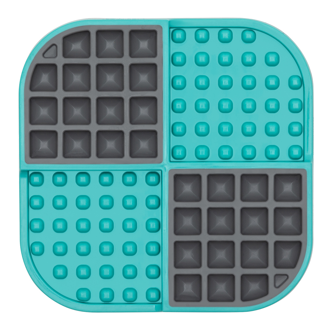 Nevíš, jestli radši zpomalovací misku nebo lízací podložku? Pak je LickiMat Slomo tvoje volba! Slomo je takové 2 v 1. Barevné části plní funkci lízací podložky, šedé prohlubně poslouží proti hltání. Unikátní design umožňuje tvému psovi vyčmuchat a slíznout jak suché, tak i mokré jídlo díky 4 zónám s prohlubněmi i výstupky.