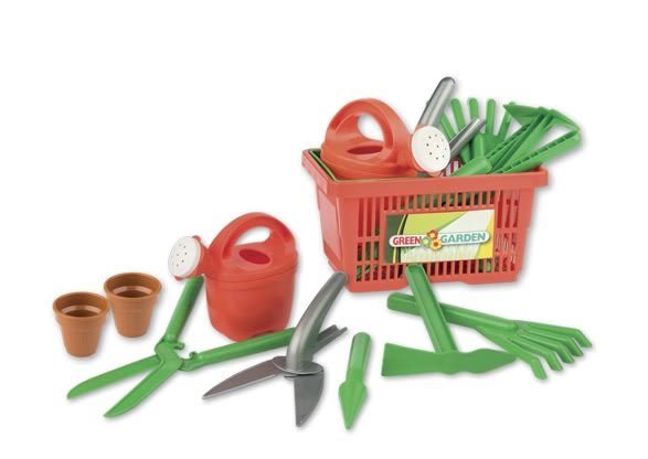 9dílná sada zahradnického nářadí v praktickém košíku pro malé zahradníky, vyrobená z kvalitních plastů v Itálii.Set obsahuje: Košík s rukojetí, konvičku 0,5 litru, 2 malé zahradní truhlíky, dva druhy zahradních nůžek, důlkovač, motyčku a hrabičky.Sada: 23 x 16 x 23 cm (d x š x v), váha 0,45... číst celé