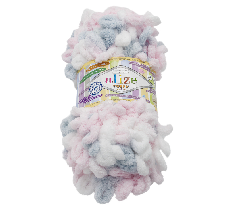 Příze PUFFY color je ideální volbou pro ty, kdo chtějí vytvořit originální šály či deky bez použití jehlic. Díky velkým očkům je pletení jednoduché a zábavné - stačí pouze ruce! Připravte si barevnou paletu v odstínech bílé, šedé a světle růžové a vykouzlete krásné a hebké doplňky do svého domova.
