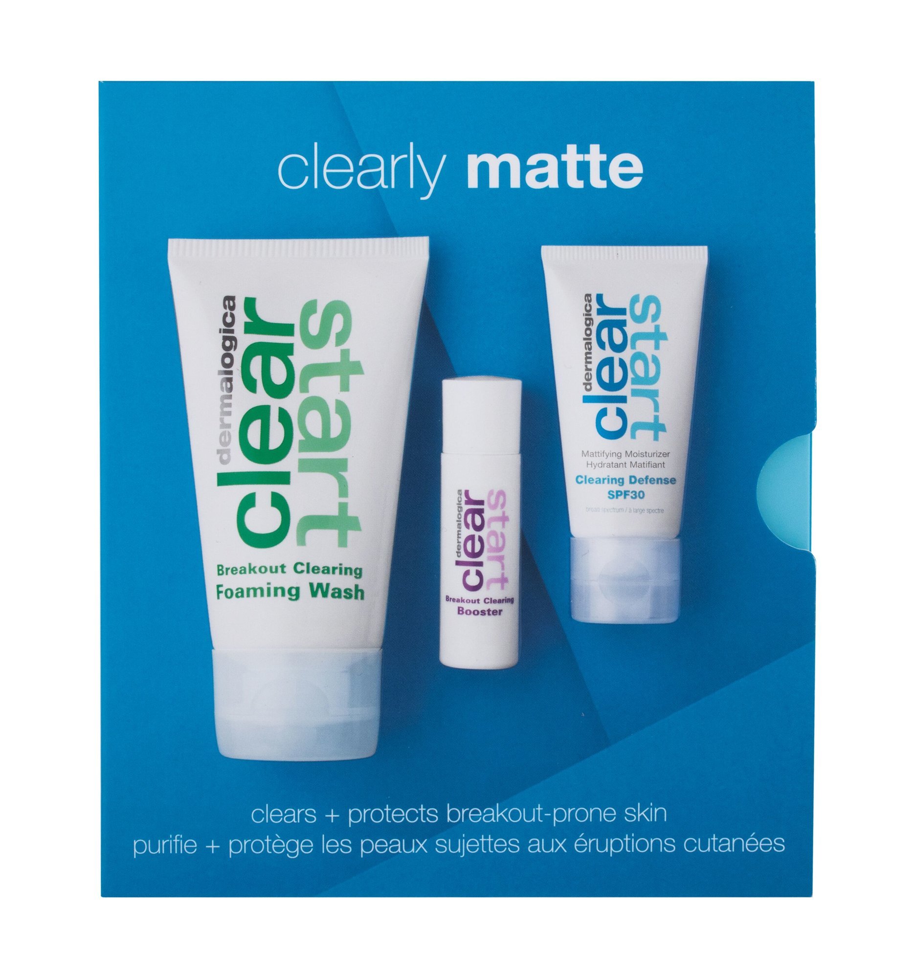 Dermalogica Clearly Matte Skin Kit čisticí pěna Clear StartBreakout Clearing Foaming Wash 75 ml + pleťové sérum Clear Start Breakout Clearing Booster 10 ml + denní pleťová péče Clear Start Clearing Defense SPF30 15 ml