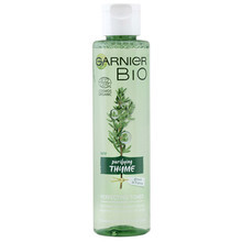 Garniel má novou řadu bio, která je z přírodních surovin, je veganská a je skvělá. Zvlášť tohle tonikum jsem si zamilovala. Doporučila bych ho hlavně pro mastnou pleť, na tu se hodí skvěle. Obsahuje tymiánový olej a kyselinu salicylovou, opravdu krásně zmatní pleť a po delším používání se mi zdá, že se mi i mírně stáhli póry, i když nějaký zázrak s nimi vám asi nedokáže udělat žádný kosmetický produkt.