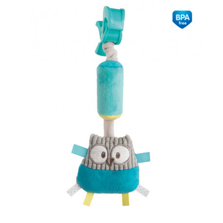 Canpol babies Plyšová hračka se zvonečkem a klipem PASTEL FRIENDS tyrkysová sova