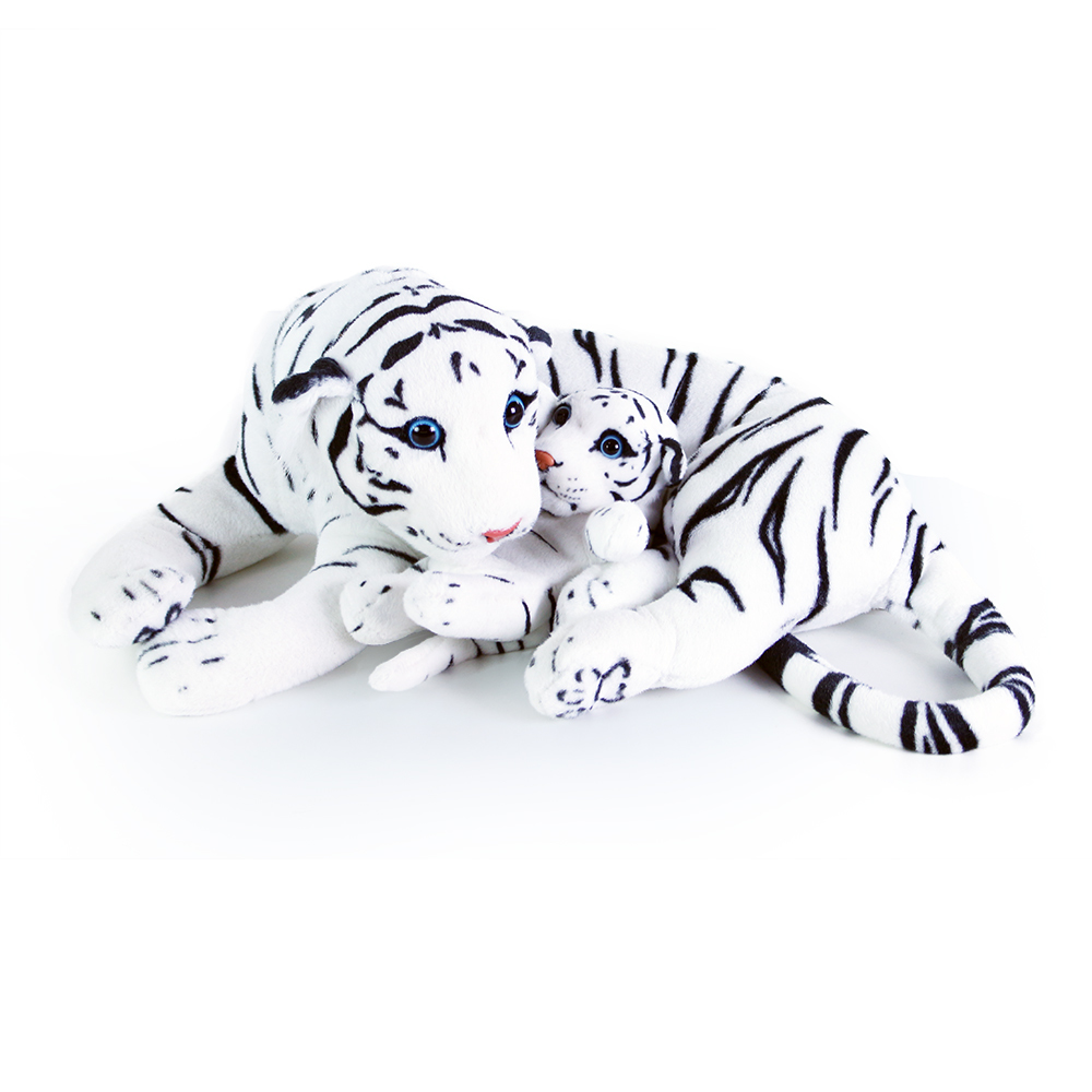 Velký plyšový tygr bílý ležící s mládětem 40 cm