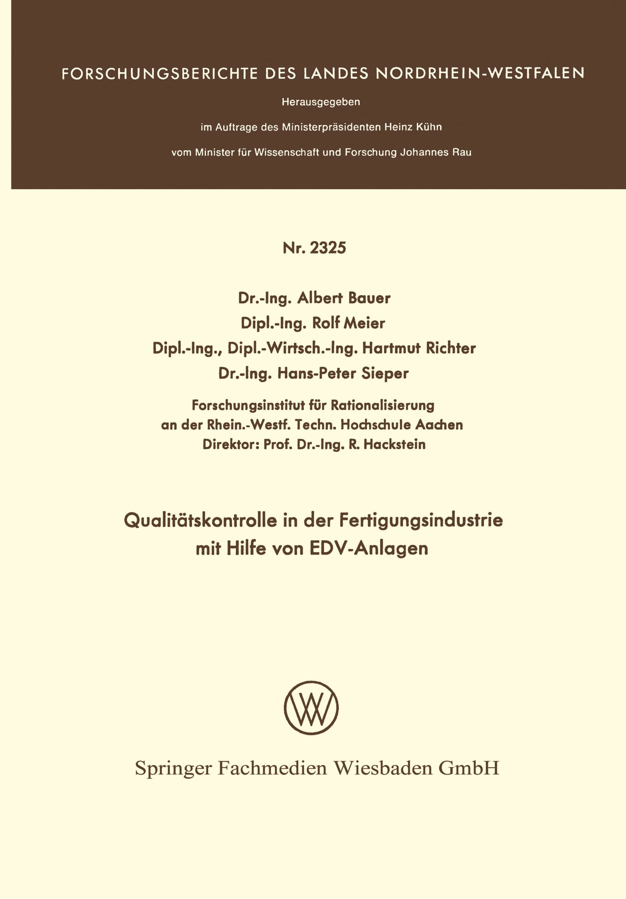 Qualitätskontrolle in der Fertigungsindustrie mit Hilfe von EDV-Anlagen (německy)