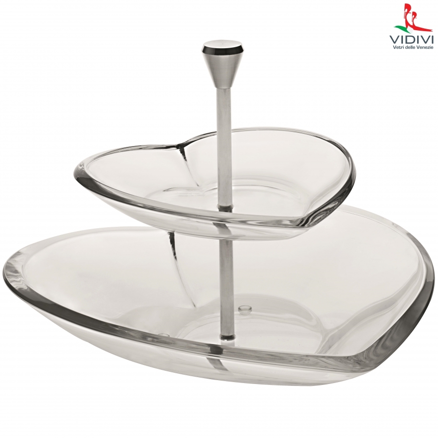 VIDIVI, skleněný servírovací podnos (etažérka) CUORE, 2 patra, 20 / 30 cm