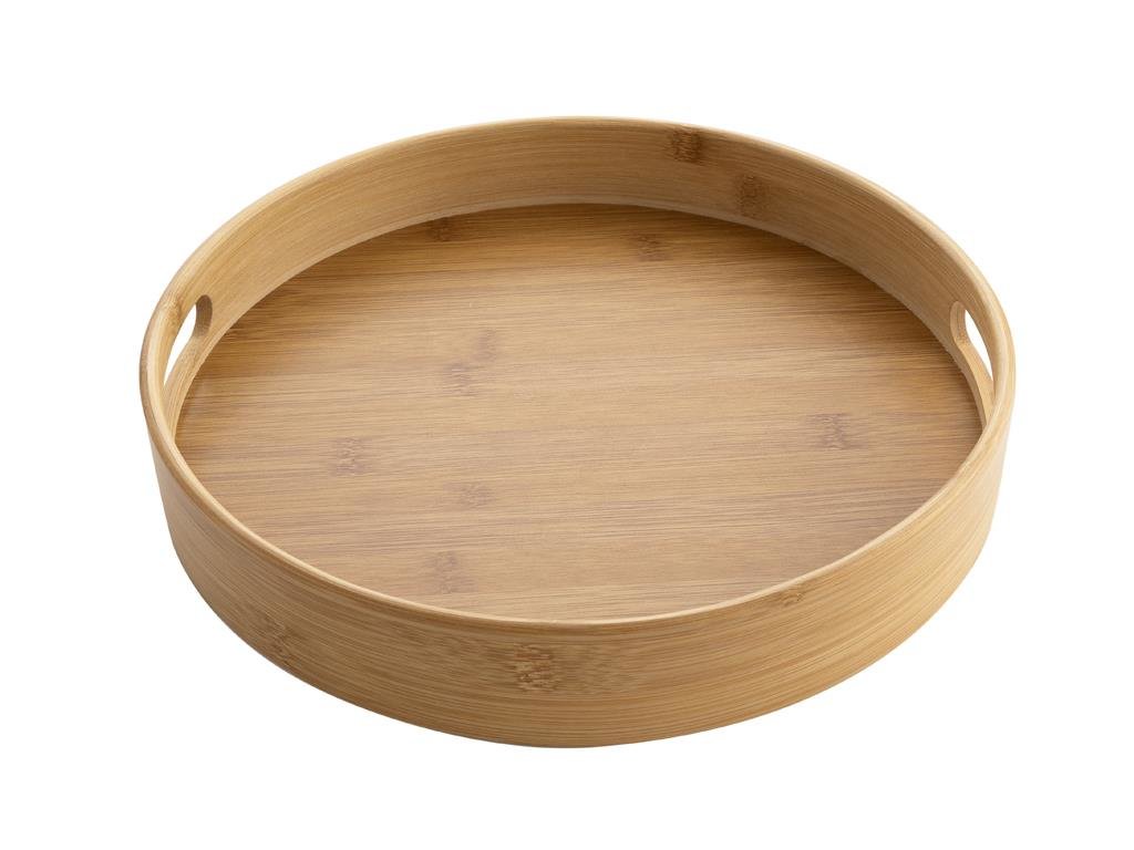 Tento podnos je vyroben z kvalitního bambusu a dřevovláknité desky, což zaručuje lehkost, pevnost a zároveň snadnou údržbu. Díky rozměrům 30 x 5 cm je ideální na menší podávání, nabízí však dostatek prostoru pro pohodlné použití. Jeho kulatý tvar dodává podnosu jedinečný estetický vzhled a podtrhuje jeho přírodní charakter.
