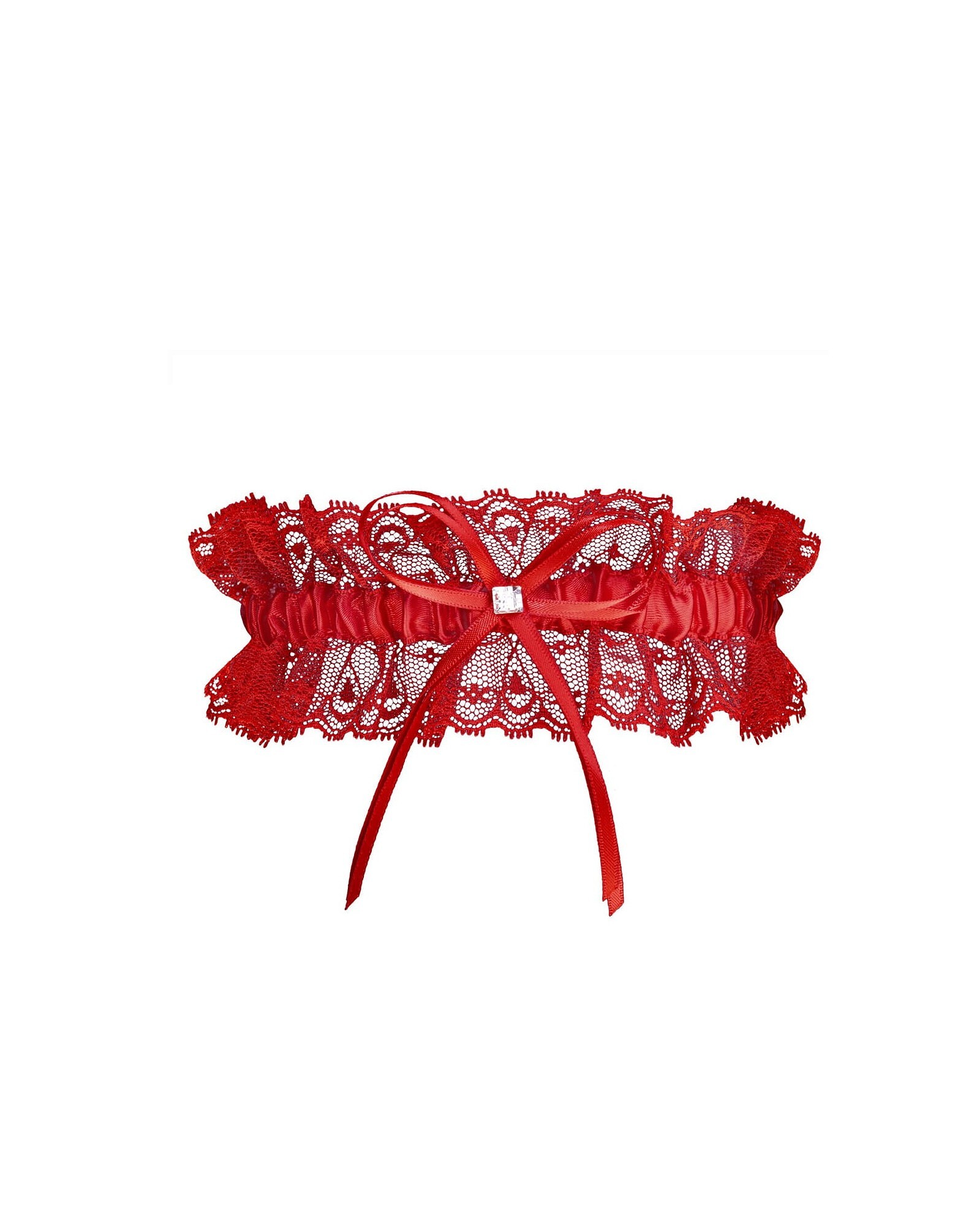 Elegancka podwiązka- z koronki i satynowej taśmy- zdobiona wstążeczką z połyskującym kryształkiem číst celé