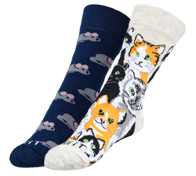 Ponožky dětské Kočka+myš - šedá, oranžová - 20-24