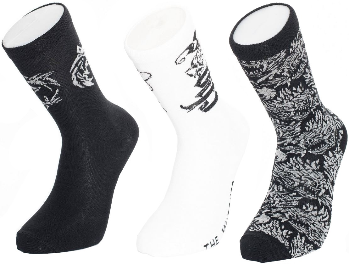 Oficiální produkt - ponožky z katalogu zboží s logem a grafikou akčního seriálu The Witcher (Zaklínač) od společnosti Netflix.Zboží je legálně licencováno a prodáváno se souhlasem vlastníků licenčních práv.Sada tří párů ponožek vyvedených v motivu seriálu Zaklínač. Ponožky jsou vhodným doplňkem...