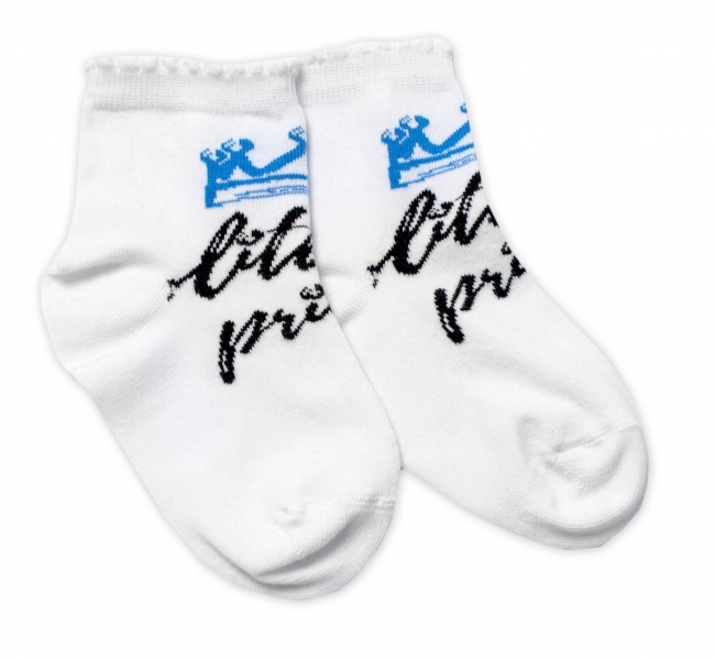 Baby Nellys Bavlněné ponožky Little prince - bílé; 92/98 (18-36m)