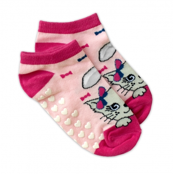 Dětské ponožky s ABS Kočka - sv. růžové