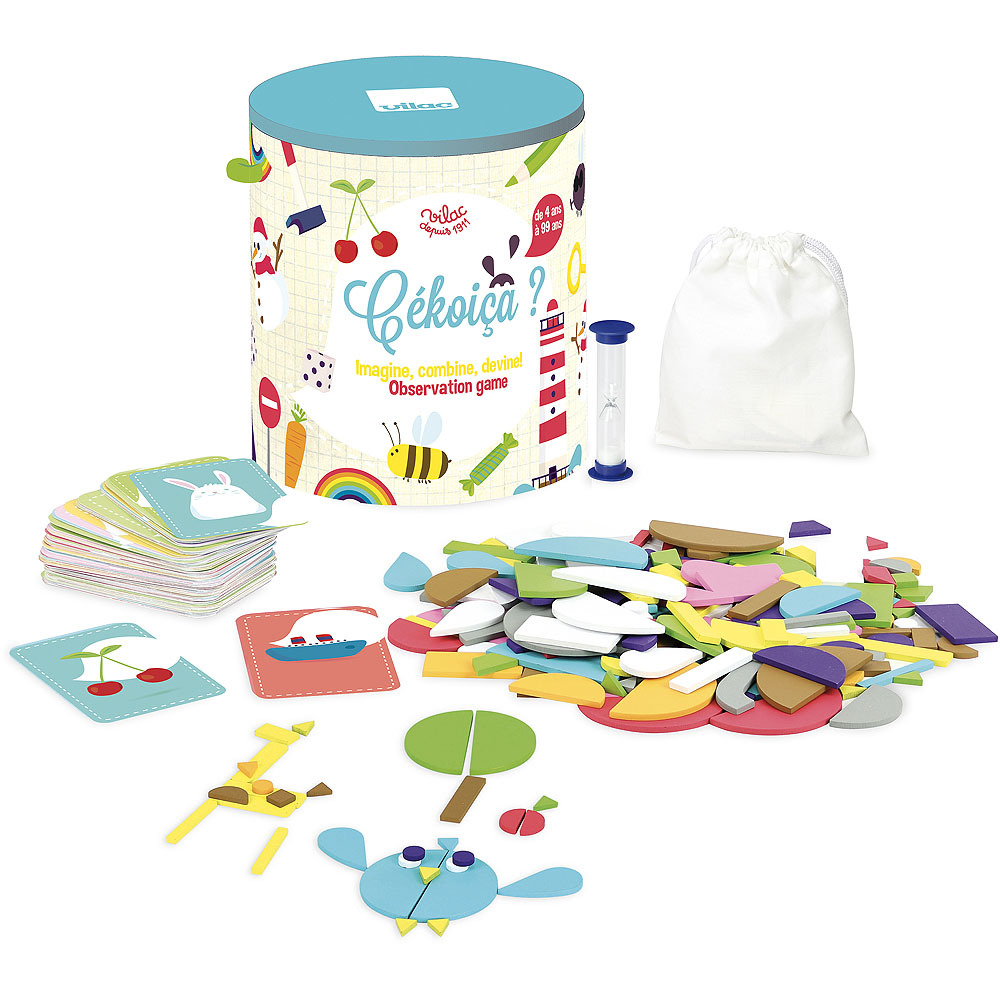 Zábavná hra pro celou rodinu. Vezměte si kartičku, přečtěte si slovo a z dostupných tvarů postavte tento obrázek. Ale pozor, máte na to jen jednu minutu. Připravit, pozor, skládejte! Obsahuje 200 dílků. Hračky Vilac mají značku francouzské agentury ADEME, to znamená, že tyto dřevěné hračky jsou vyráběny ekologicky. Šetří životní prostředí, neznečišťují půdu, vodu a vzduch, neplýtvají energiemi.