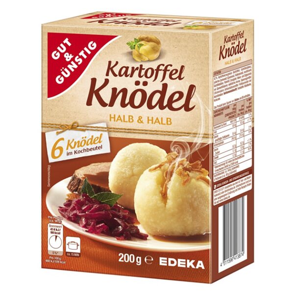 Tento balíček obsahuje 6 kusů instantních bramborových knedlíků o hmotnosti 200 g, které jsou zabalené ve speciálním varném sáčku. Stačí knedlíky vložit do studené osolené vody, přivést k varu a krátce povařit, poté nechat 15 minut táhnout a můžete servírovat. Díky unikátní technologii zůstává konzistence knedlíků příjemná a chuť autentická, tak jako byste je připravovali sami doma.