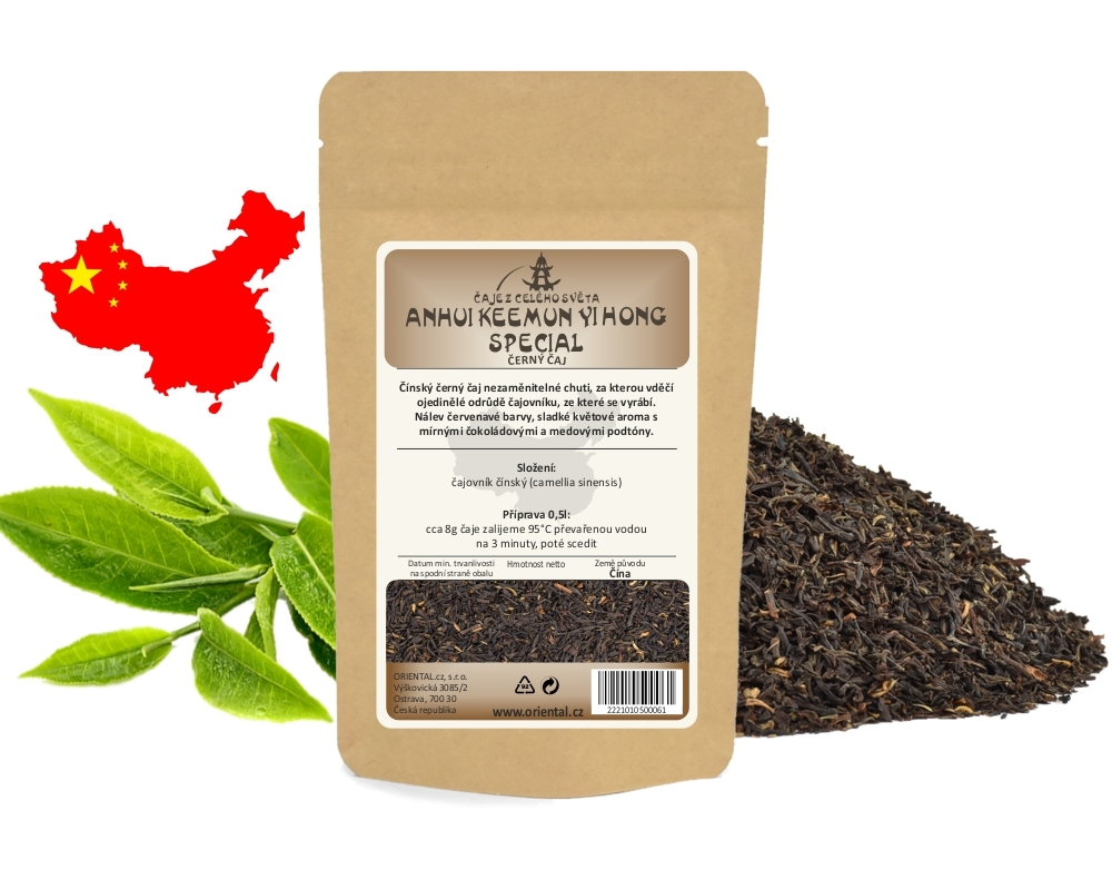 Čínský černý čaj nezaměnitelné chuti, za kterou vděčí ojedinělé odrůdě čajovníku, ze které se vyrábí. Nálev červenavé barvy, sladké květové aroma s mírnými čokoládovými a medovými podtóny. Lístky jsou svinovány do podoby drobných pokroucených jehliček.Provincie Anhui je důležitou produkční...