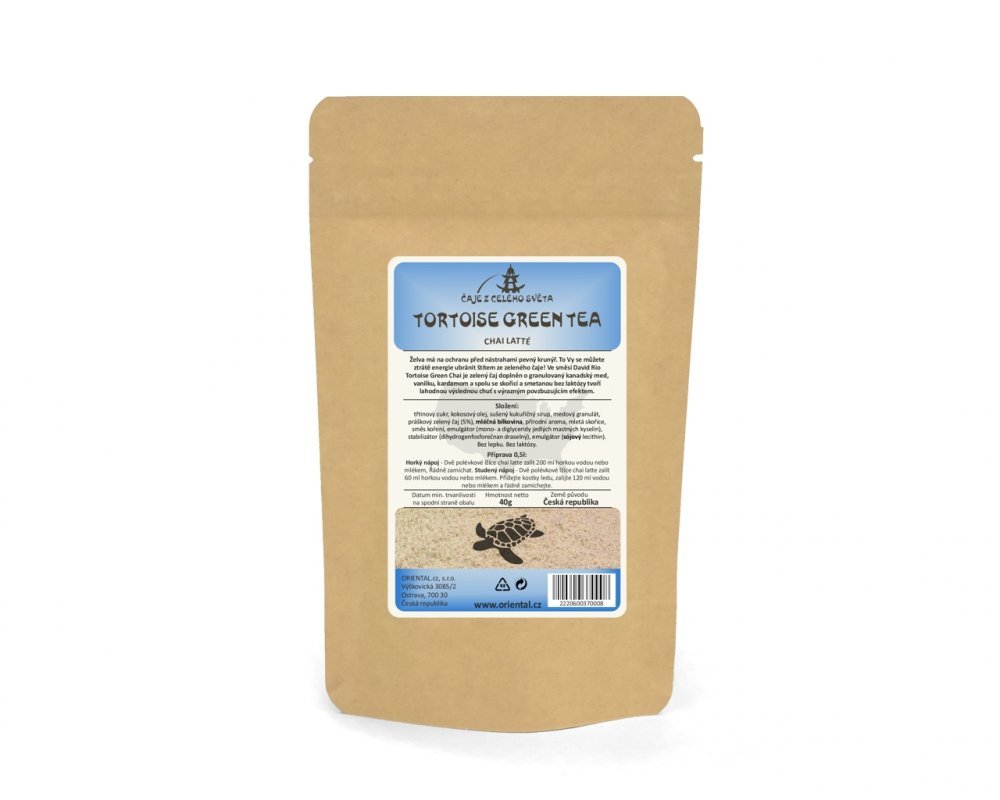 Chai - původem tradiční indický nápoj. Jedná se o směs čaje,mléka a koření. Tortoise se zeleným čajem, medem, vanilkou a kardamonem.Želva má na ochranu před nástrahami pevný krunýř. To Vy se můžete ztrátě energie ubránit štítem ze zeleného čaje! Ve směsi David Rio Tortoise Green Chai je zelený...
