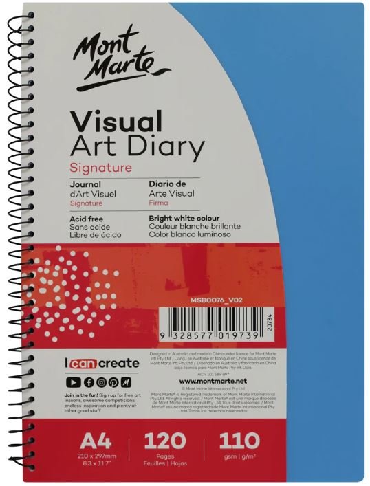 Mont Marte spirálový kreslicí blok, bílý papír, 110g/m2, A4, č.0076, 60 listů, 1ks - mix barev