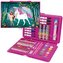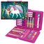 Zestaw artykułów plastycznych w walizce. W skład zestawu wchodzą: linijka, 12 pisaków, 12 kredek ołówkowych, 12 farb akwarelowych, 1 pędzel, 1 ołówek, klej, temperówka, gumka do mazania, 12 kredek woskowych, 12 pasteli woskowych + kolorowanka (4 kartki) + przeźroczysta paleta. číst celé