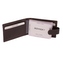 Kožené pouzdro na vizitky a karty se uzavírá přezkou s pevným drukem. Uvnitř pouzdra je dostatek kapes na vizitky nebo platební a jiné karty z fólie. Po stranách pouzdra jsou kožené kapsy. Pouzdro je vyrobené z pravé kůže hnědé barvy a je bez loga značky. Do pouzdra je možné uložit 16 karet....