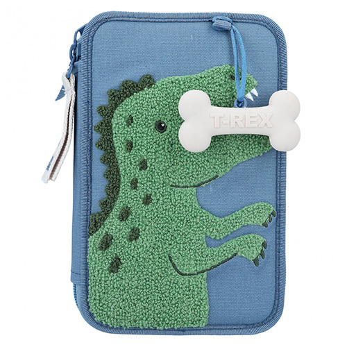 Penál dvě patra s výbavou Dino World, Modrý, zelený plyšový T-Rex