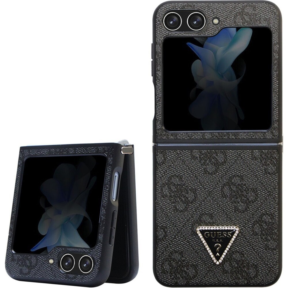 Guess 4G PU Leather Triangle kryt Samsung Galaxy Z Flip5 černý