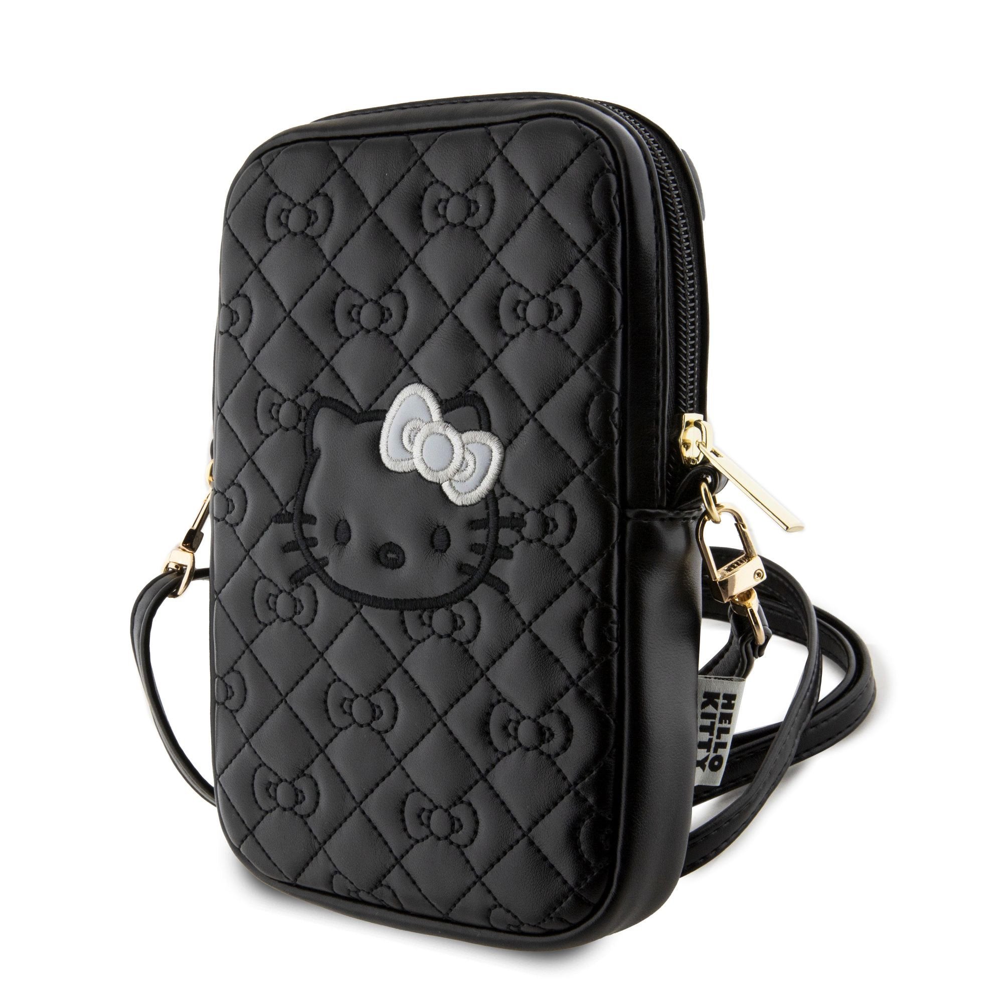 Hello Kitty PU Leather Quilted Pattern Kitty Head Logo Phone Bag Black