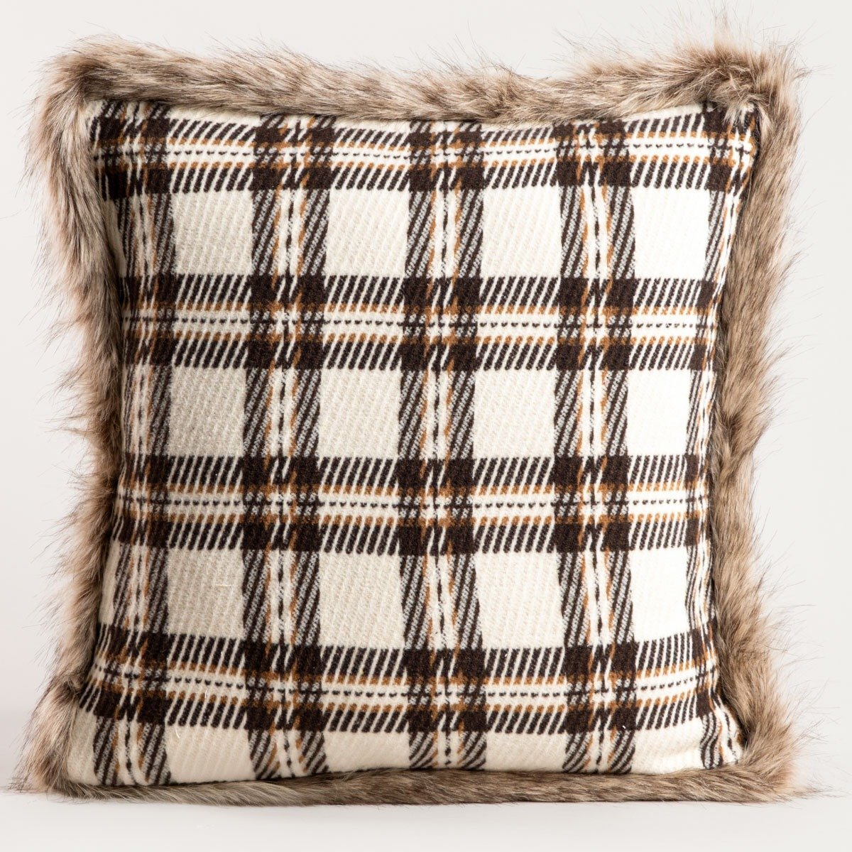 Poszewka | ABEDO | w kratę z futrzaną lamówką | 45x45cm | 749537