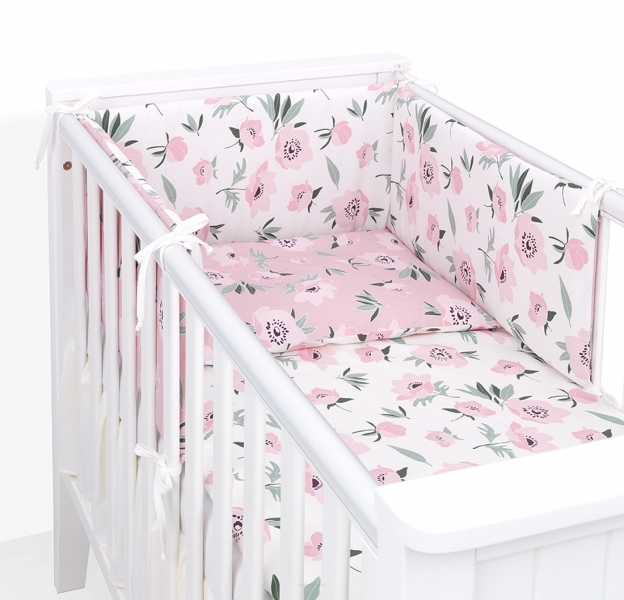 Mantinel s povlečením do postýlky, 3D sada Bavlna, Růže, pudrová/ecru, 135x100 cm; 135x100