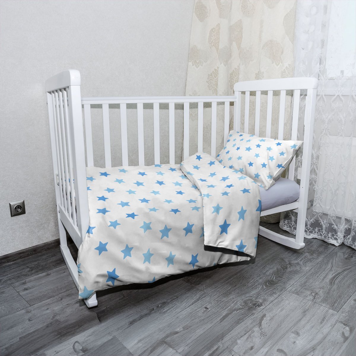 Dětské povlečení do postýlky Modré hvězdy na bílé: 120x90 / 40x60