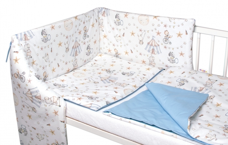 3-dílná sada Mantinel s povlečením Baby Nellys Cirkus, modrá/bílá; 120x90