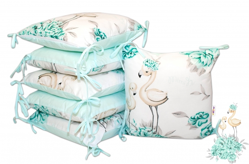 Polštářkový mantinel, bavlna Baby Nellys Plameňák - mátový