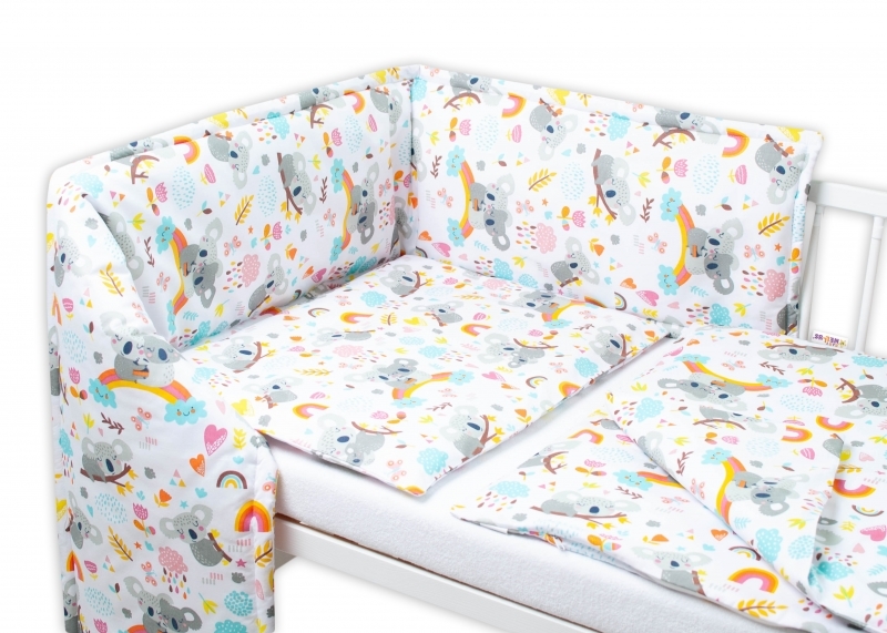Baby Nellys 3-dílná sada Mantinel s povlečením - Koala a duha, bílá,135x100 cm; 135x100