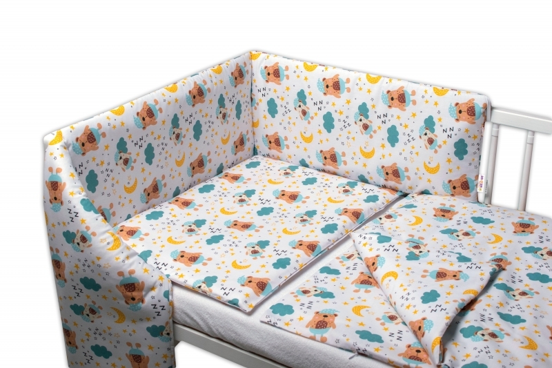 3-dílná sada, mantinel s povlečením Sny medvídků - hnědá, bílá, 135x100 cm; 135x100