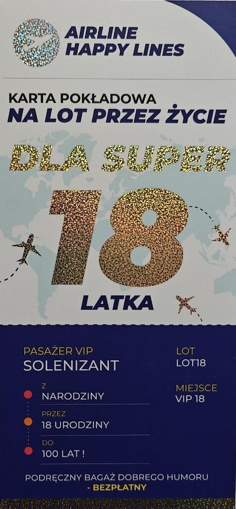 Karnet karta pokładowa 18 urodziny męskie