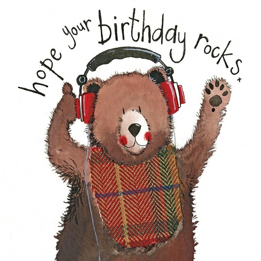Karnet Urodziny LS83 Miś w słuchawkach