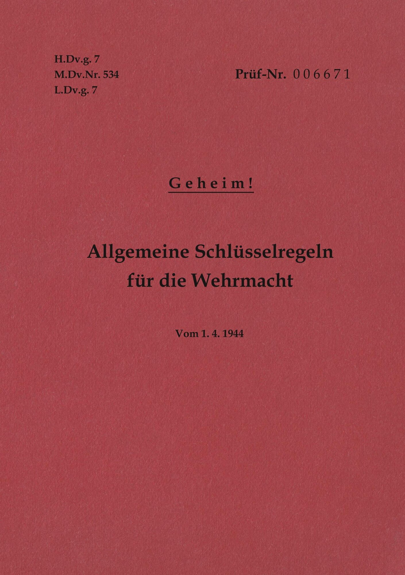 H.Dv.g. 7, M.Dv.Nr. 534, L.Dv.g. 7 Allgemeine Schlüsselregeln für die Wehrmacht - Geheim - Vom 1.4.1944 (německy)