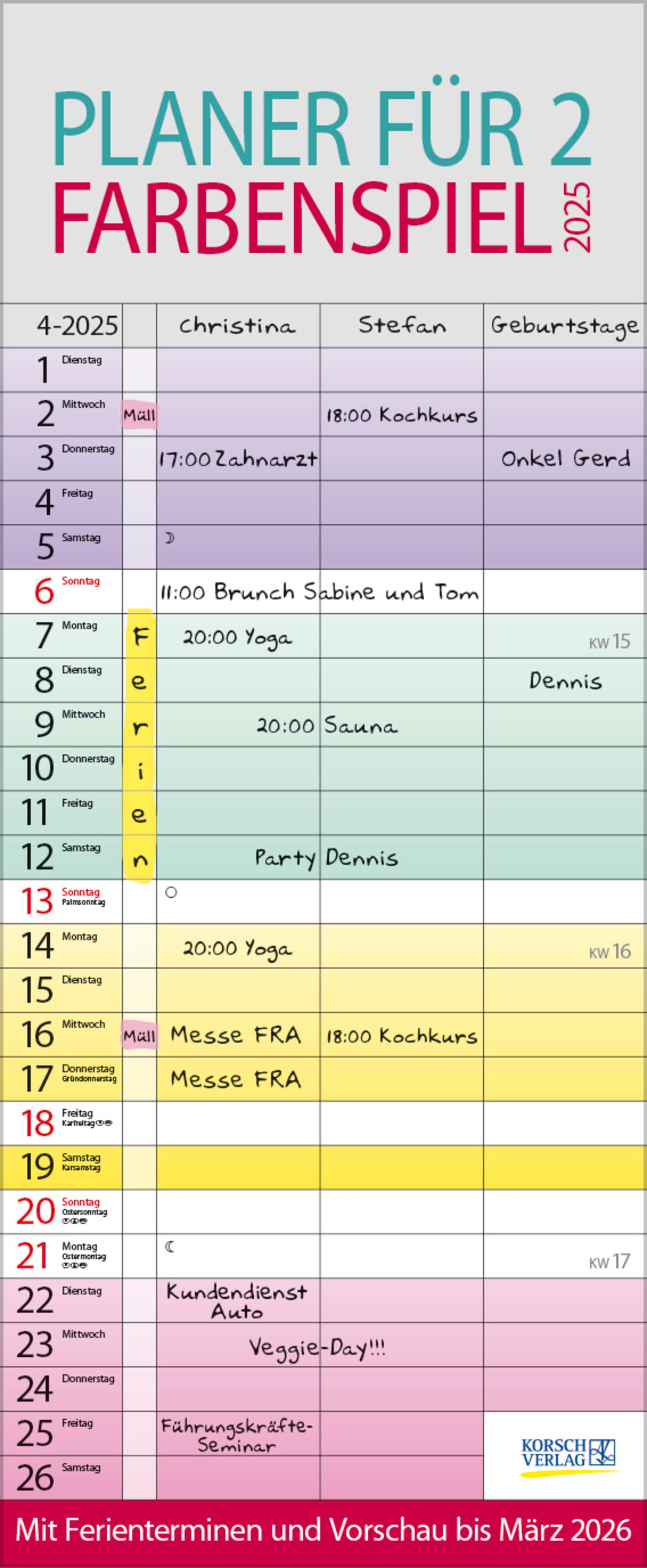 Farbenspiel - Planer für 2 2025 (německy)