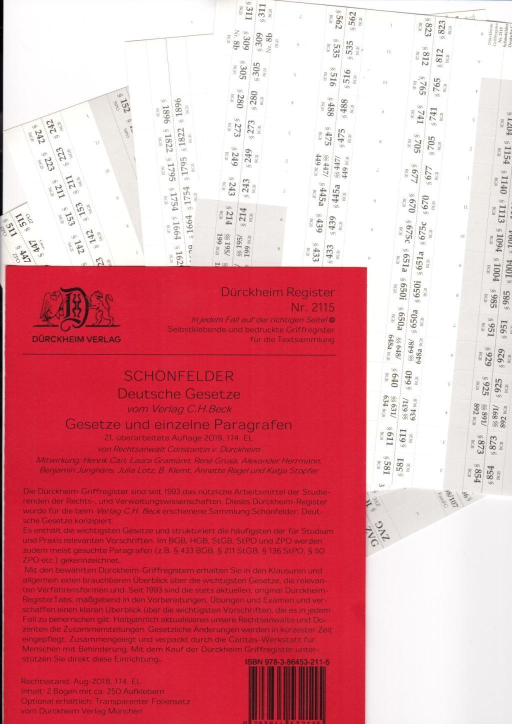 SCHÖNFELDER Dürckheim-Griffregister Nr. 2115 (2019/174.EL) (německy)