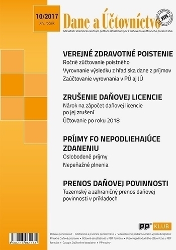 Publikácia obsahuje nasledovné témy: Preplatky a nedoplatky z ročného zúčtovania poistného, Zrušenie daňovej licencie od roku 2018, Príjmy fyzickej osoby nepodliehajúce zdaneniu, Prenos daňovej povinnosti v príkladoch, Zásoby v sústave podvojného účtovníctva, Výročná správa neziskovej... číst celé