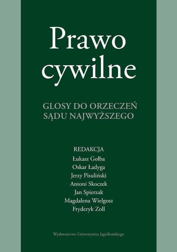 Przedkładany Czytelnikom zbiór glos do ośmiu orzeczeń Sądu Najwyższego stanowi wynik pracy w ramach seminarium magisterskiego prowadzonego przez Jerzego Pisulińskiego oraz Fryderyka Zolla. Glosy dotyczą zagadnień kontrowersyjnych. Nie tylko prezentują stanowiska dotyczące prawa cywilnego, które...
