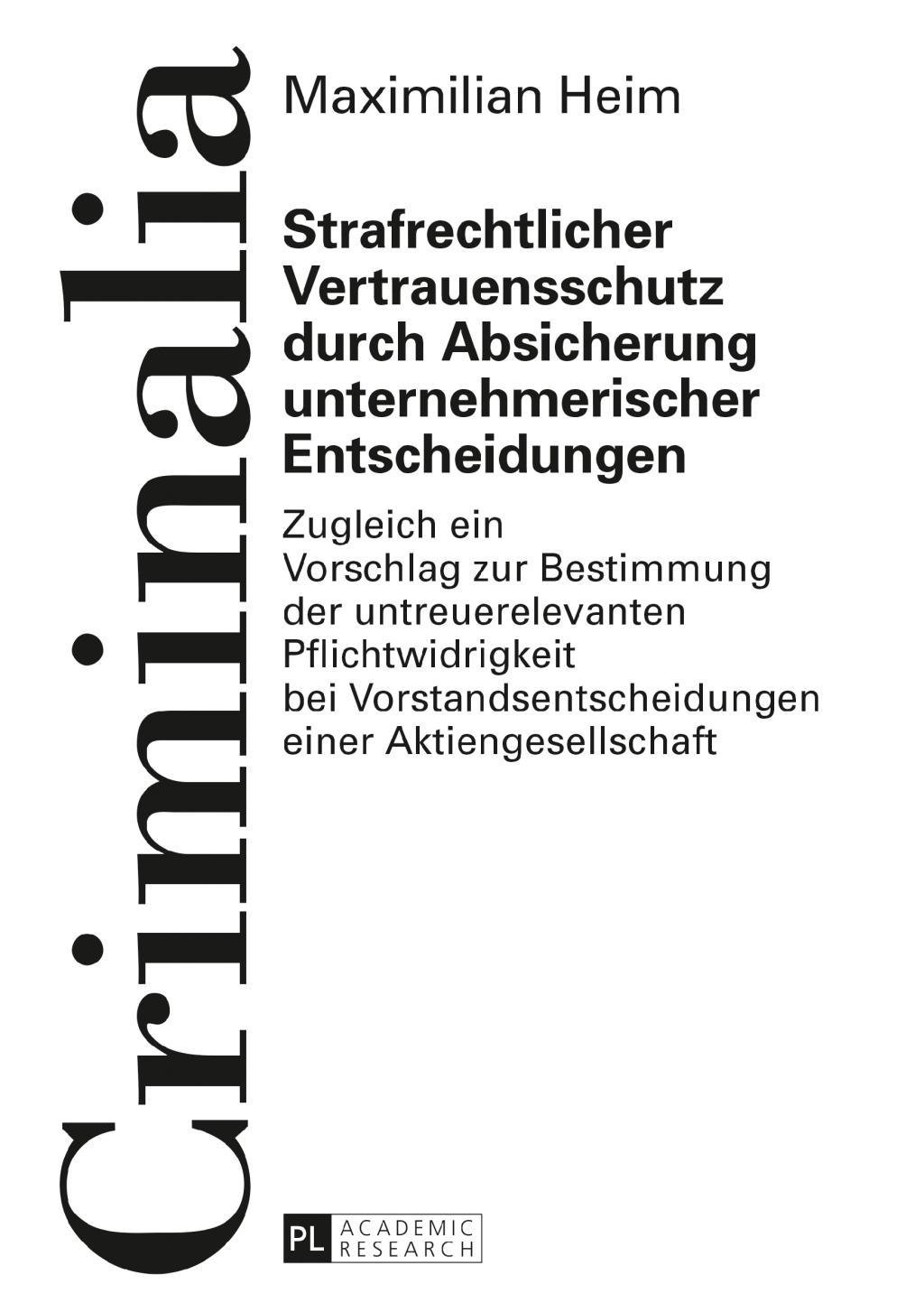 Strafrechtlicher Vertrauensschutz durch Absicherung unternehmerischer Entscheidungen (německy)