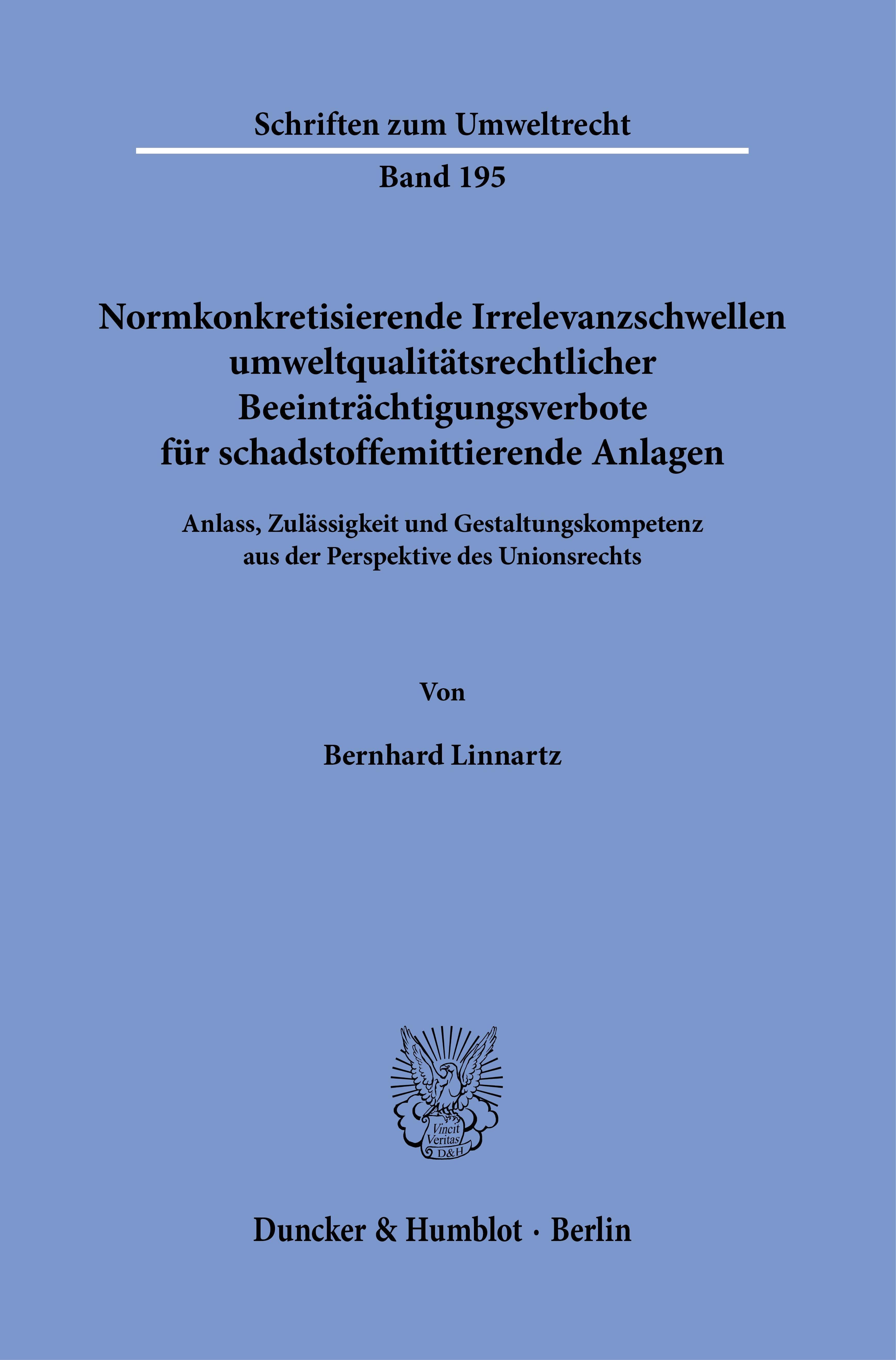 Normkonkretisierende Irrelevanzschwellen umweltqualitätsrechtlicher Beeinträchtigungsverbote für schadstoffemittierende Anlagen. (německy)